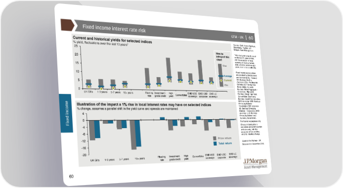 Fixed income interest rate risk GTM –UK | 60 Source: (Both charts) Barclays, Current and historical yields for selected indices Bloomberg, FactSet, J.P. % yield, fluctuations over the last 10 years* Morgan Asset Management. 25 How to *Historical yield range is based interpret this on the last 10 years of data, 20 chart with the exception of local currency emerging markets Max debt, which is based on eight 15 years, due to data availability. Fixed income sectors shown 10 Average are provided by Barclays and are represented by: Treasury Current UK: Barclays Sterling 5 Aggregate Gilts; Floating rate: Min Barclays US Floating Rate Notes (BBB); IG credit: Barclays Global Aggregate – 0 Corporates; High yield: UK Gilts 1-3 years 5-7 years 10+ years Floating Investment- High Convertibles EMD USD EMD USD EMD LC Barclays Global High Yield; rate grade credit yield sovereign corporate sovereign Convertibles: Bloomberg Barclays Credit/Rate Sensitive; e EMD sovereign USD: Barclays Illustration of the impact a 1% rise in local interest rates may have on selected indices Emerging Markets – m Sovereigns; EMD corporate o % change, assumes a parallel shift in the yield curve and spreads are maintained ($): Barclays Emerging c Markets – Corporates; EMD n 4 sovereign (LC): Barclays i d Emerging Market Local e 0 Currency Government. x Fi For illustrative purposes only. -4 Change in bond price is calculated using both duration -8 and convexity, with the exception of Convertibles, which is historical change. -12 Price return -16 Total return Guide to the Markets - UK. Data as of 31 December 2016. -20 UK Gilts 1-3 years 5-7 years 10+ years Floating Investment- High Convertibles EMD USD EMD USD EMD LC rate grade credit yield sovereign corporate sovereign 60